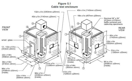 เครื่องทดสอบการกระจายเปลวไฟในแนวตั้งของสายเคเบิลซึ่งได้รับการออกแบบตามข้อกำหนดที่เกี่ยวข้องของมาตรฐาน UL1685, GB18380.3 เกี่ยวกับข้อกำหนดในการทดสอบลวดและสายเคเบิล และพบกับ IEC 60332-3-10, KS C IEC 60332-3-21 ~ 25 (A ~ Class D)