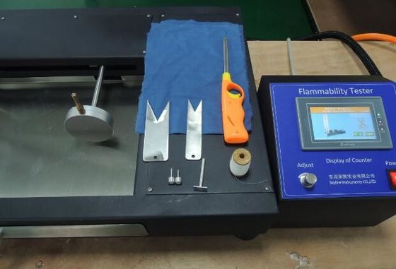 เครื่องทดสอบการเผาไหม้ในแนวตั้งของผ้าสิ่งทอ ISO6941 ใช้สำหรับการทดสอบพฤติกรรมการเผาผ้าสิ่งทอการวัดคุณสมบัติการแพร่กระจายของเปลวไฟของชิ้นงานในแนวตั้ง