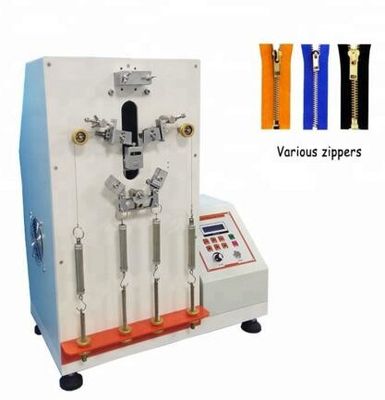 อุปกรณ์ทดสอบความล้าของซิปแบบทนทานด้วยระบบอิเล็กทรอนิกส์เพื่อตรวจสอบความต้านทานต่อการหมุนกลับของซิป (ตัวยึดแบบสไลด์) ชิ้นงานทดสอบจะต้องอยู่ภายใต้การทำงานของวงจรตามจำนวนที่กำหนดในขณะที่อยู่ภายใต้แรงดึงด้านข้างและตามยาว