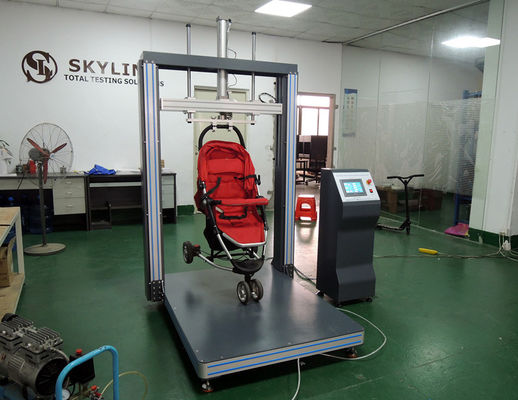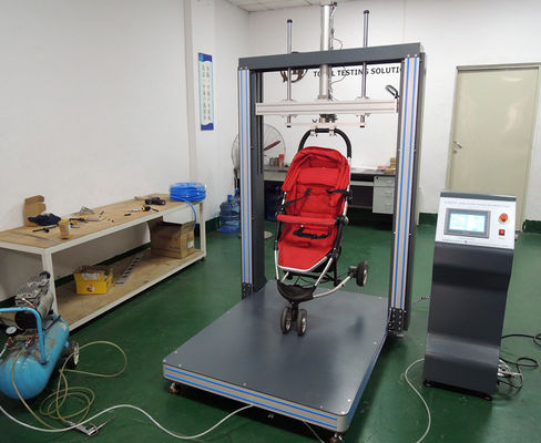 เครื่องทดสอบนี้เหมาะสำหรับการทดสอบความทนทานของรถเข็นเด็กแบบกดดึงเมื่อจำลองสิ่งกีดขวาง