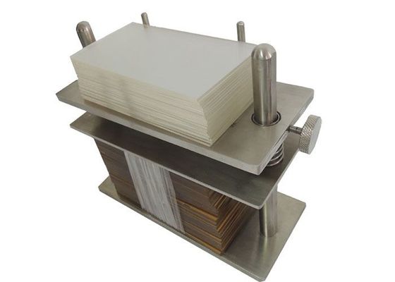 ประกอบด้วยแผ่นอะครีลิคจำนวนหนึ่งซึ่งสามารถเก็บไว้ในโครงโหลดที่เหมาะสมโครงโหลดประกอบด้วยแผ่นเหล็กสองแผ่นซึ่งวางแผ่นอะคริลิกไว้ชิ้นงานทดสอบจะถูกเย็บระหว่างชิ้นผ้าสีขาวที่เหมาะสมแล้วจุ่มลงในสารละลายทดสอบที่เป็นด่างหรือกรด